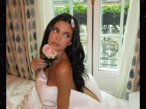 Kylie Jenner’s a rose without any thorns … posing with a flower, a bed sheet and basically nothing else in some new photos she shared…