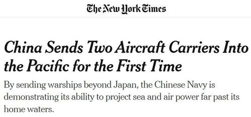 “In a display of Beijing’s growing military reach, the Chinese Navy sent two aircraft carriers into the Pacific Ocean, far from the country’s coast, for the first time to conduct exercises together, Japan’s defense minister, Gen Nakatani, said,” writes the NY Times on Tuesday. Let’s compare this ‘threat’ to the eleven active nuclear-powered aircraft carriers that America currently has in action, with worldwide patrol and reach.