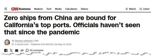 But, as always happens, it was CNN that finally took this “broken telephone” narrative to its absurd conclusion, when the media outlet that has become the butt of all propaganda jokes declared that “Zero ships from China are bound for California’s top ports. Officials haven’t seen that since the pandemic.”