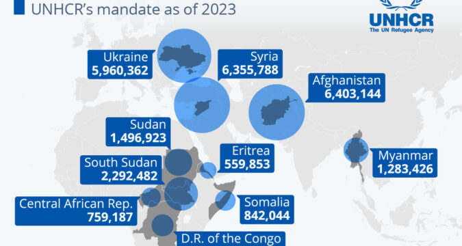 Syrians are the second largest population displaced across borders, with 6.36 million living outside of the country. The latest count of displaced Ukrainians totaled 5.96 million people, the third-highest in the world.