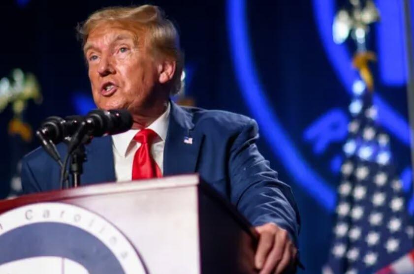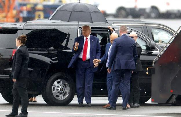 Former U.S. President Donald Trump as he arrives at Reagan National Airport following an arraignment in a Washington, D.C., court in Arlington, Virginia, on Aug. 3, 2023. (Tasos Katopodis/Getty Images)